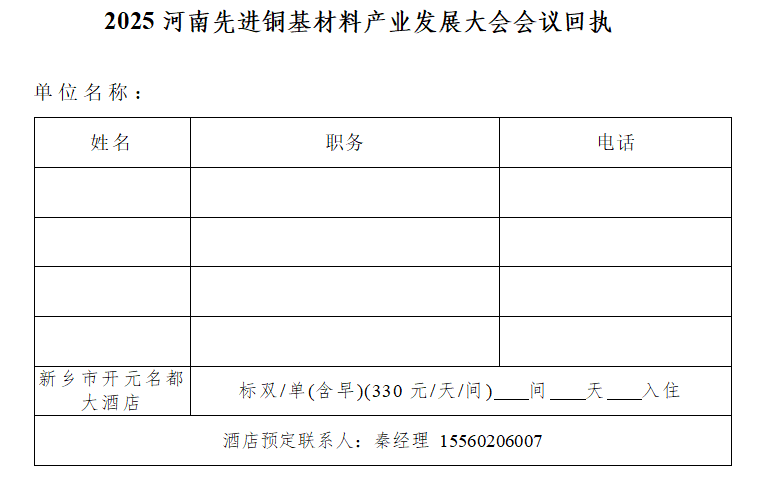 为积极响应国家高质量发展号召,深入贯彻省委省政府关于制造业高质量发展的战略部署,紧抓全球铜产业链供应链深度重构的战略机遇,前瞻谋划产业“十五五”发展蓝图,推动科技创新与产业创新深度融合,促进产业链上下游企业协同合作,培育壮大铜产业新质生产力,助力河南铜产业迈向更高质量、更高水平的发展新阶段,为河南省制造业强省建设贡献坚实的铜业力量,经研究决定,拟于2025年11月24-26日在河南省新乡市召开“2025河南先进铜基材料产业发展大会”。